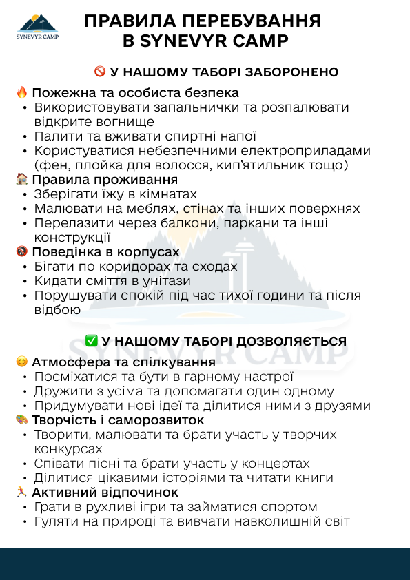 Приєднуйтесь до SynevyrCamp — табору серед Карпат, де народжуються справжні пригодидружба та спогади на все життя.